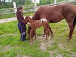 Tak a všechna letošní hříbátka jsou naštěstí v pořádku na světě. 15.6 v 5:20 se zasloužilé matce Miss Tercy Docs Bar narodila veliká hnědá kobylka . Čas porodu si holky uměly vybrat, malá Teruška se narodila cca 4 hodiny před tím, než jsme oba měli svědčit bratrovi na svatbě 150km daleko:) Ale všechno dobře dopadlo, svatba se konala a já moc děkuji Blance a jejím dětem za denní dohled nad čerstvě narozenou kobylkou :-)